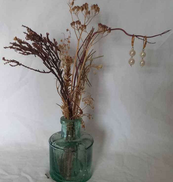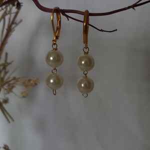 These earrings are made from glass pearls and hooks in either gold plated lever backs or silver-plated hooks; They are classic and minimalistic, and would perfectly suit both the Light and Dark Academia aesthetic, as well as being perfect for weddings.