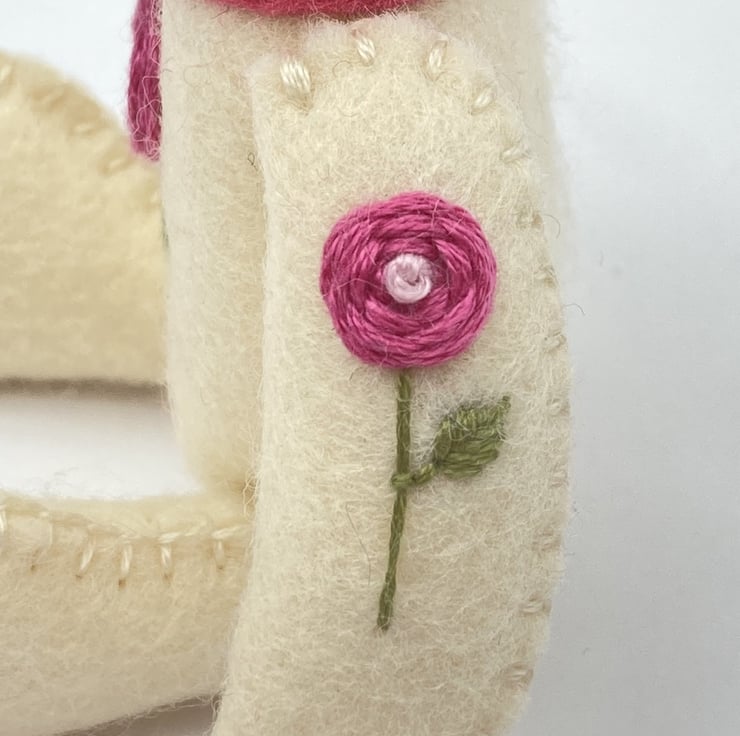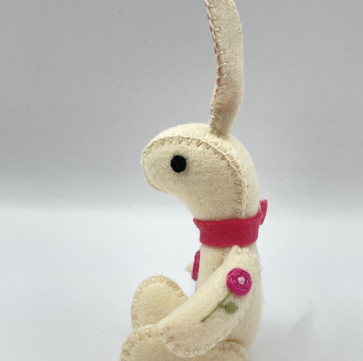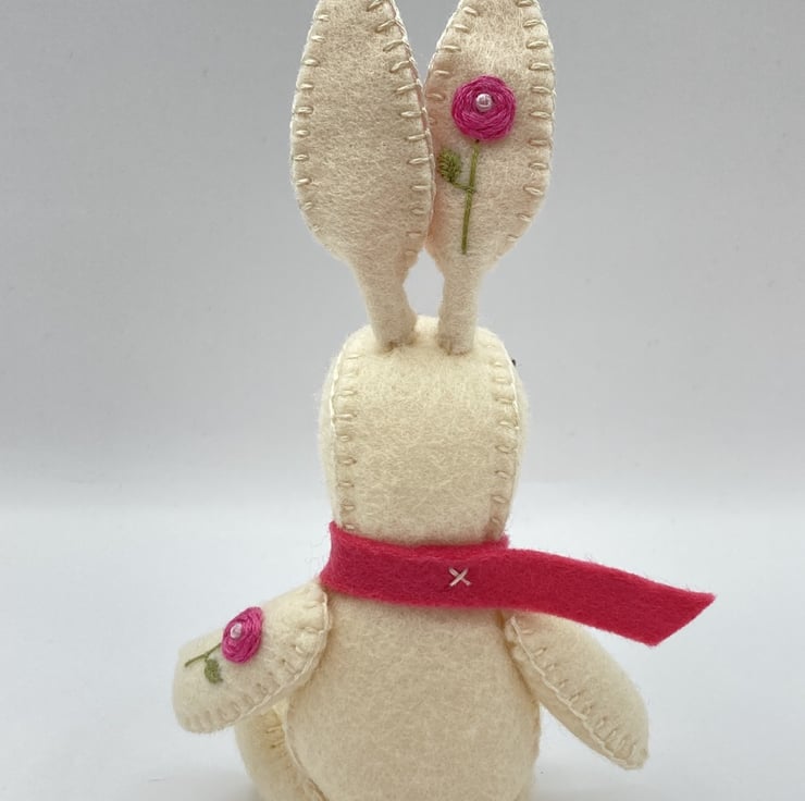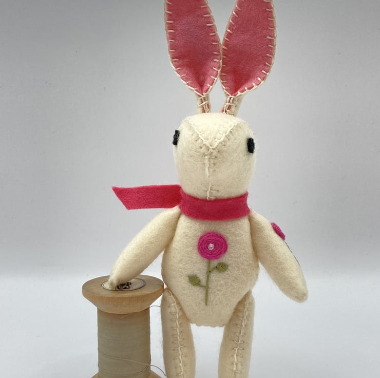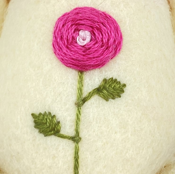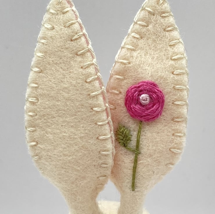Bunny is completely hand embroidered by myself using various stitches, making them unique.
