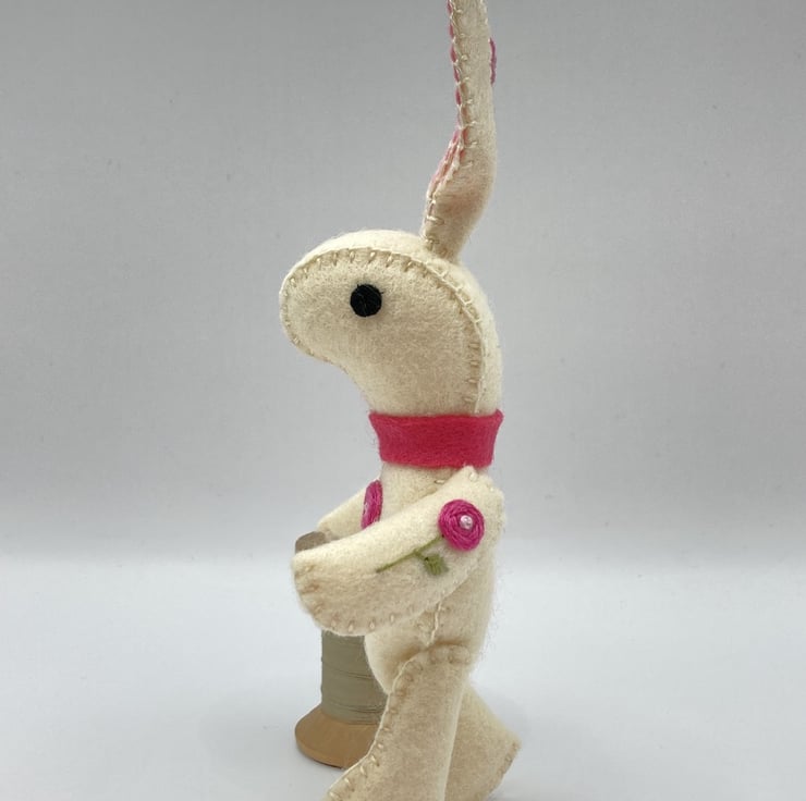 I have used cream wool felt to make Bunny’s body which I have lovingly filled with regulation Hi-Loft polyester toy stuffing.