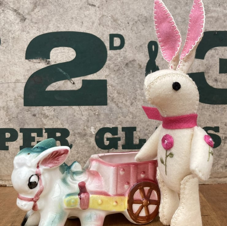 Cream Bunny stands approximately 19cm tall from the tip of their ears to their toes, a little pocket sized friend.