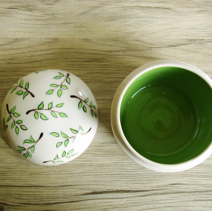 These lidded Storage jars are hand-thrown on a wheel using earthstone clay and glazes fired in an electric kiln.