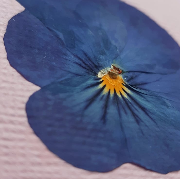 This card is one of a kind, decorated with a beautiful viola flower. All flora and foliage is carefully selected from my garden and naturally pressed in my home studio in the Herefordshire countryside.
