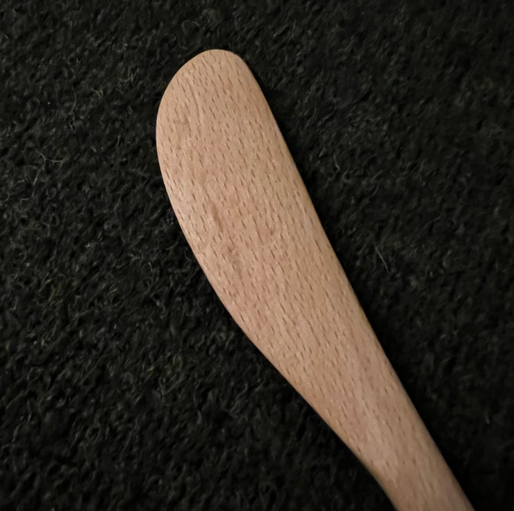 A butter knife hand carved in Oxfordshire from English beech wood.