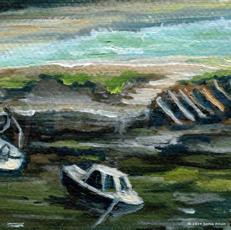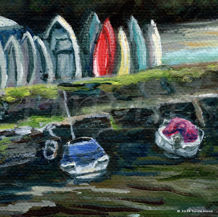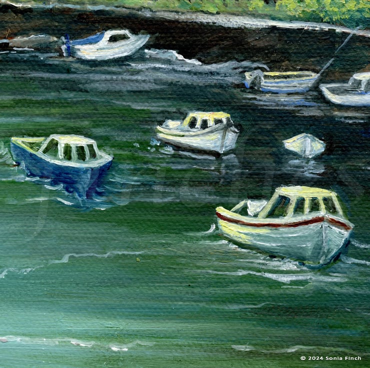 I originally started working on this painting two years prior, but I felt blocked and couldn't seem to finish it. By visiting Looe and taking photographs at different times of day and in different seasons, I just fell in love with this magical place and this inspired me to make some alterations and finish it.