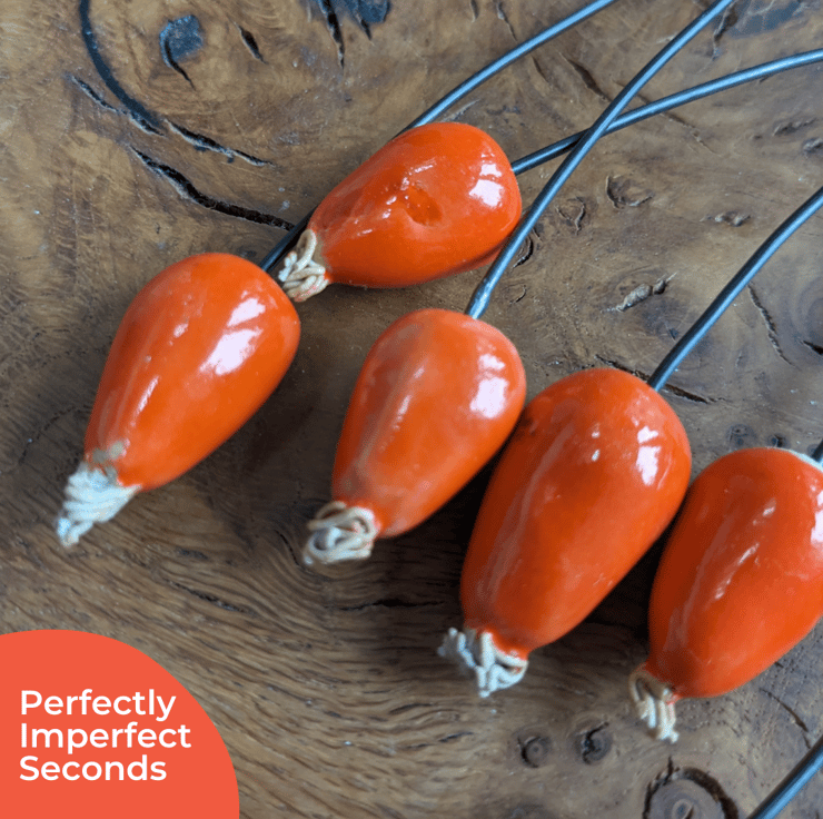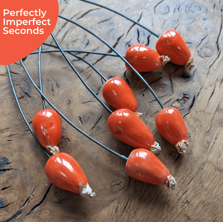 These 'seconds' stems are made using not-quite-perfect ceramic rosehips - the second and third photo shows the type of glazing flaws that the seconds rosehips may have, namely lumpy glaze, watery glaze, patchy glaze - all only noticeable up close. The other listing photos are of 'regular' stems (available in my shop at full price).