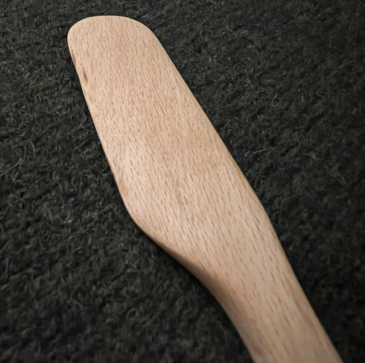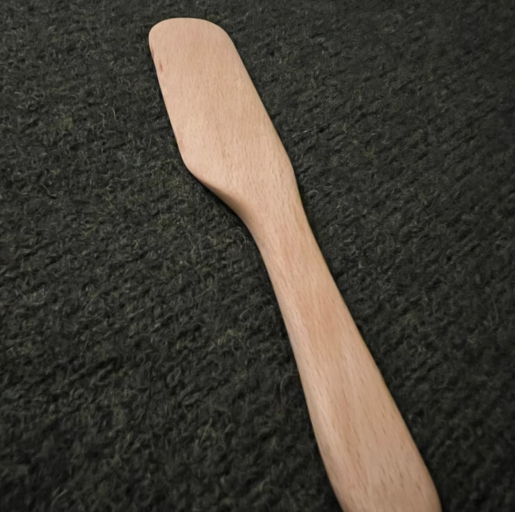 A butter knife hand carved in Oxfordshire from English beech wood.