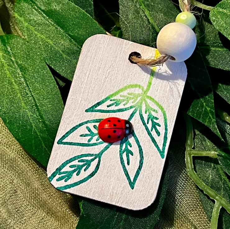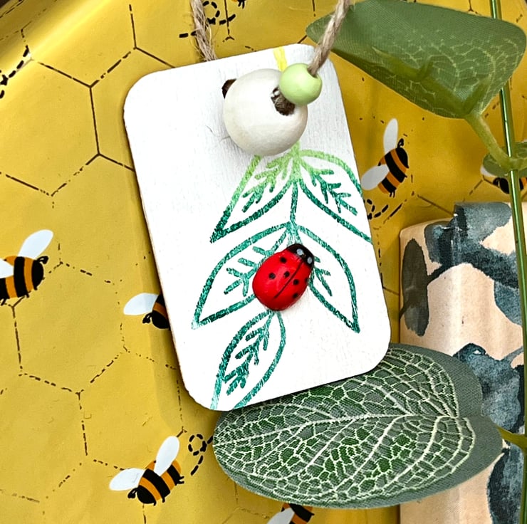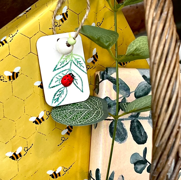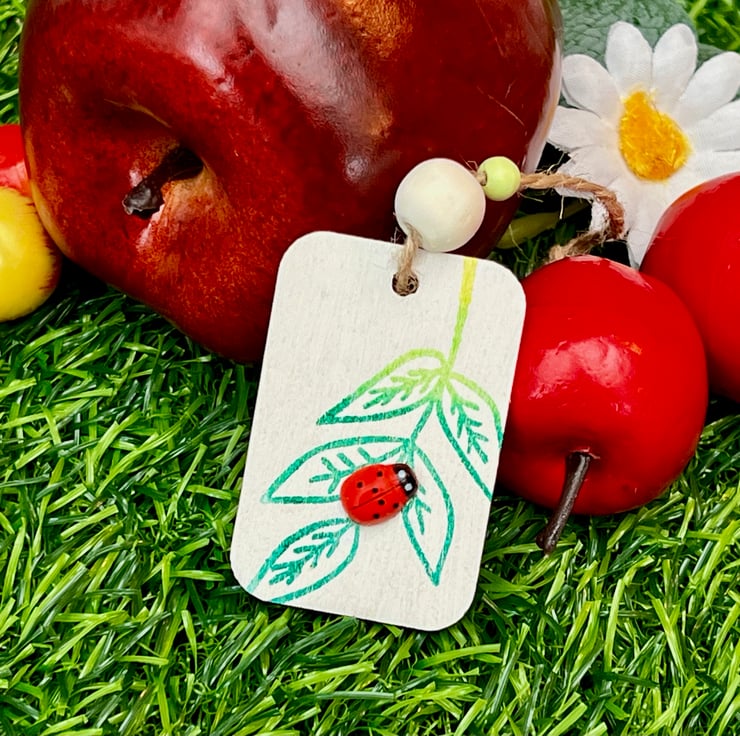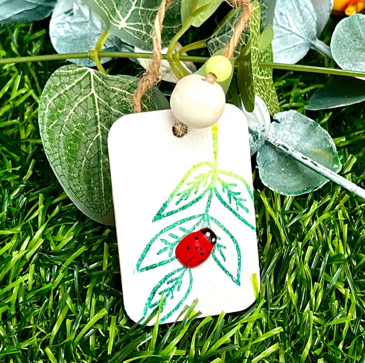 Gift tag or wooden hanging decoration - ‘Ladybird’ White. The tag measures approximately 5x3.5cm. You will receive 1 x ladybird tag.