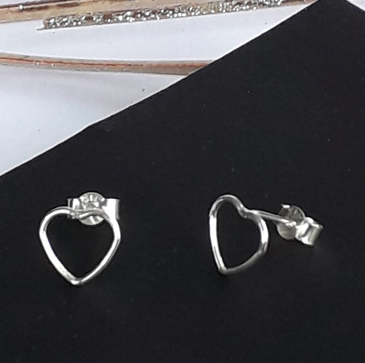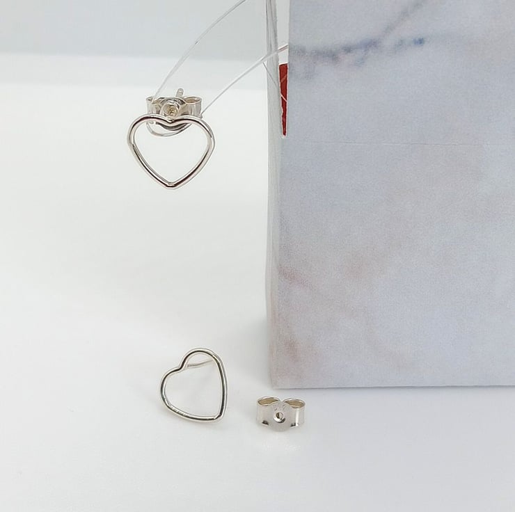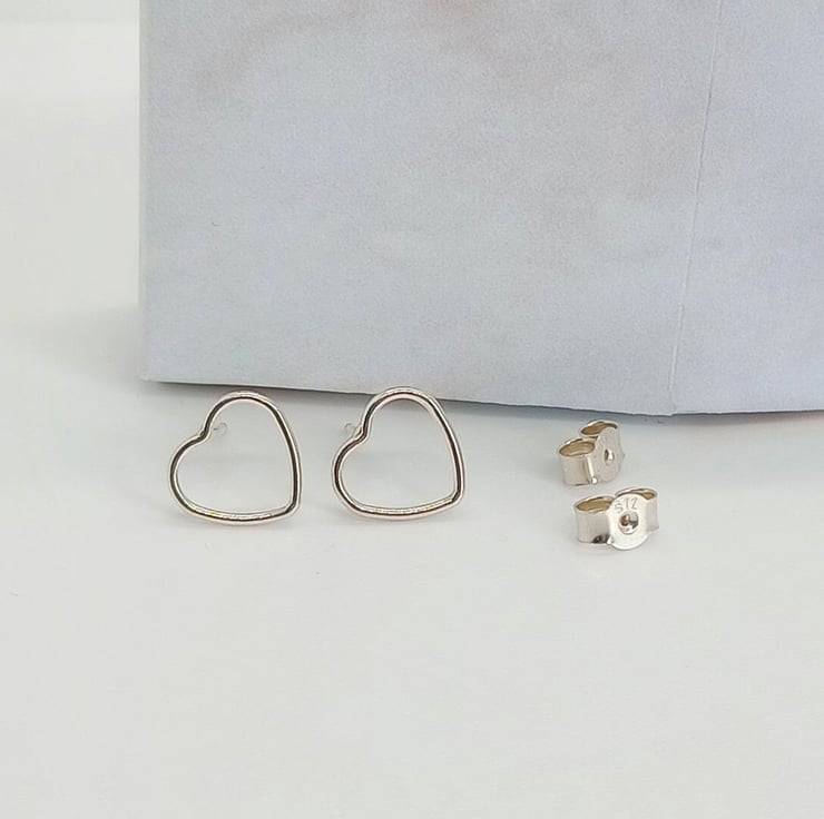 Solid sterling silver heart stud earrings, the perfect gift for the one you love.