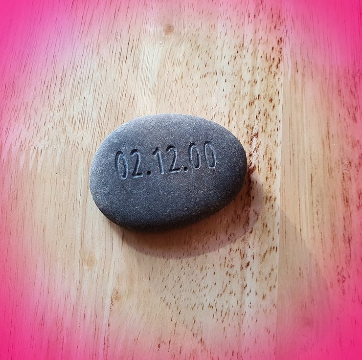 As a natural product, the stones I use for this item can sometimes still have some marks, minor dints and discolorations that can still be visible (see images). However, all are given a very good clean before being engraved etc. I use carefully selected flat smooth stones for this item, so sizes and particularly shapes vary from round to oval (see images).