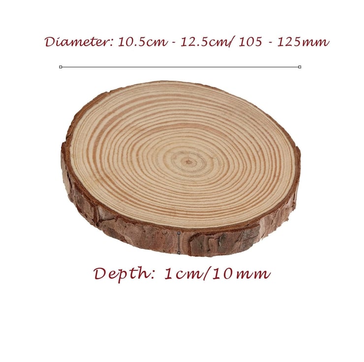 I have been making gifts such as pocket hugs, coasters, personalised cake stand etc and selling them on Etsy for some time, however I started getting asked if I would also sell wood slices to other crafters. I therefore have a range of different sizes. I have an agreement with my wholesale supplier, that I can return any I am not happy with so every slice I sell gets checked before I sell them to make sure they have a full set of barks (no bald patches) and no cracks! If you actually want slices with cracks or excessive barks then let me know, otherwise the wood slices are as per the photos and description, thanks.