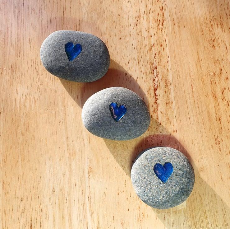 I wanted to create a beautifully simple gift of love and delivering a contrast between the smooth satin stone with the shiny glossy heart. These stones are a lovely size, perfect for the palm of your hand and they sit comfortably in your pocket. Also very tactile to touch.