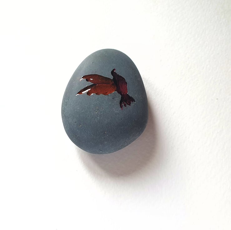 I use carefully selected flat smooth stones for this item, so sizes and particularly shapes vary from round to oval (see images). If you have a particular shape and or colour preference for your stone then please message me when you place your order or with a note at the checkout, thanks.
