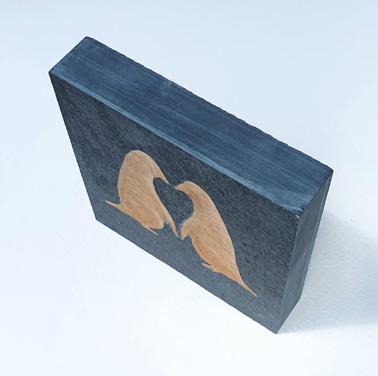 The slate is hand carved to form deep penguins in the surface, then painted with a gold enamel paint. The contrasting effect of the gold on slate is stunning but if you would prefer a metallic silver or deep red colour for the penguins, then please message me when you place your order or add a note at the checkout, thanks.