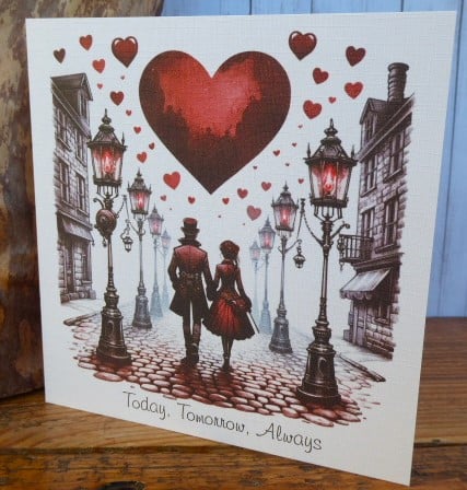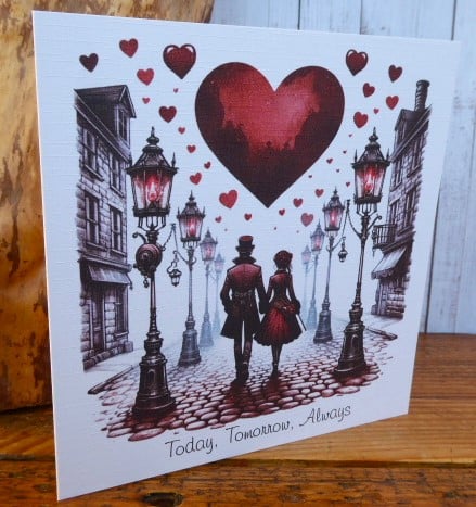 Valentine's Day Card made from 300gsm white linen card. A lovely printed image of the happy couple.