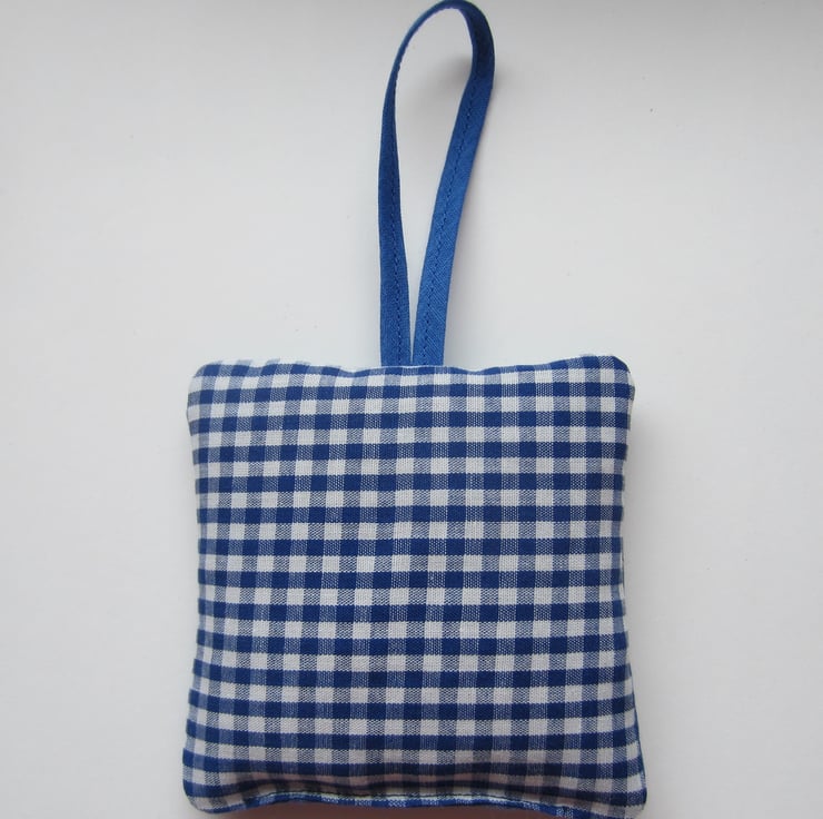 It is filled with Suffolk lavender hand picked and prepared by me and hangs with a matching blue loop.