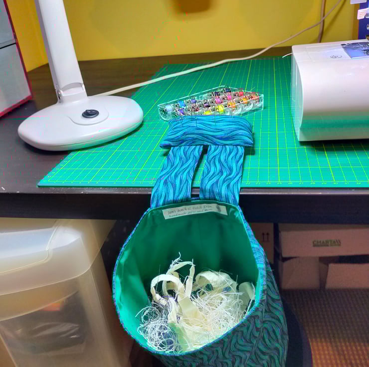 This bag is ideal to have alongside to put bits and pieces in when you are sewing, knitting, crocheting and lots of other hobbies. I use it for catching all the loose threads and little bits of fabric.