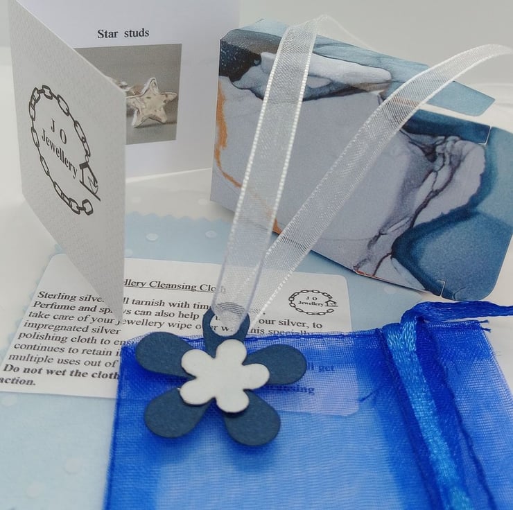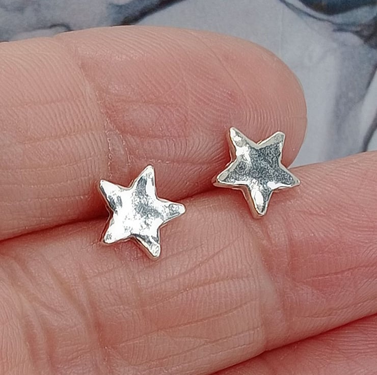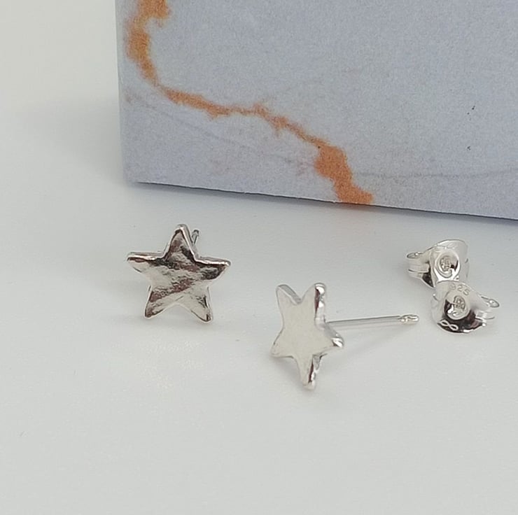 The star is made from .999 fine silver and has a hammered texture giving a wonderful bounce back of light, so you get a nice sparkle when the sun hits them, the ear pin is .925 sterling silver.