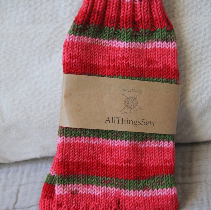 Hand crafted, knitted in the round using 4 point needles