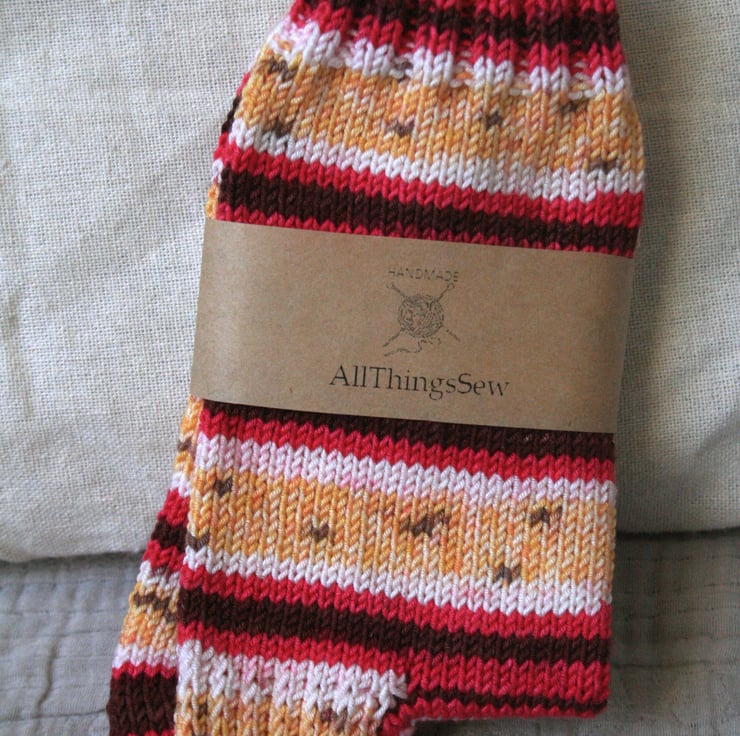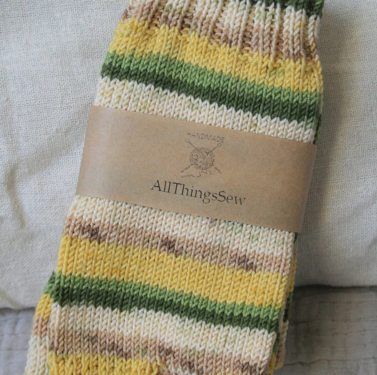 My mother and grandmother knitted socks, so I felt it was a skill I needed to master to keep going within the women in my family! After much determination of trying to master knitting on four double pointed needles, knitting socks has become a very satisfying craft of mine and I wish to share the beautiful colourful patterns that can be knitted up using sock yarn.