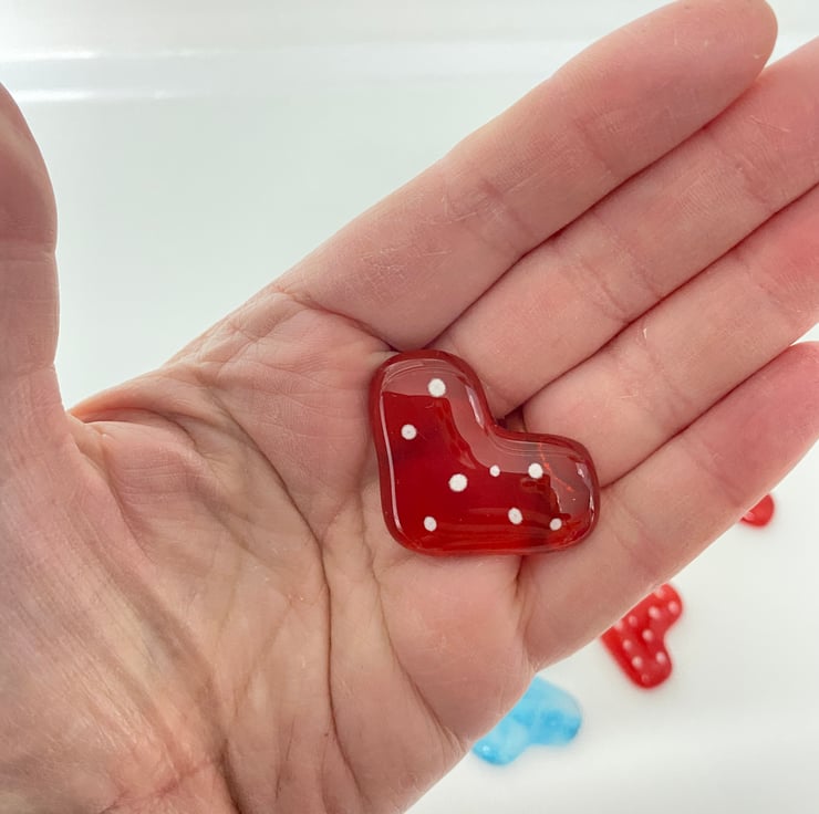 Fused glass pocket heart . A lovely small token heart to gift to someone you love - small enough to hold in the hand or pop in the purse/ wallet . Perfect as a wedding favour or just to let someone know your thinking of them .
