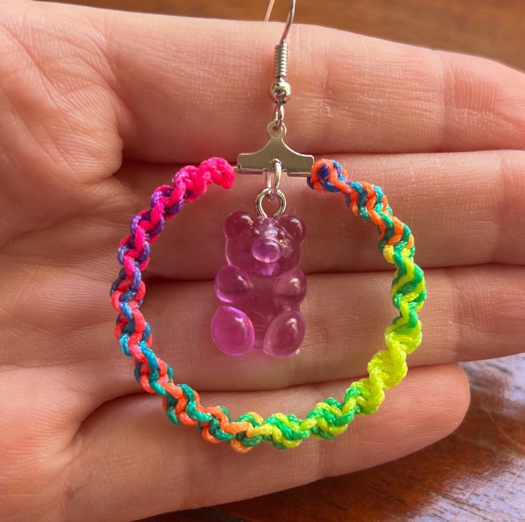 Due to the nature of this nylon cord and the way it’s dyed, each earring will be slightly different but in the same colour scheme.