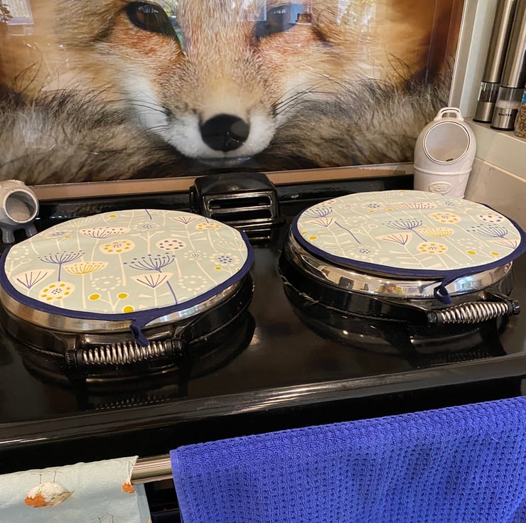 Measuring 14" (36cm) Diameter, each Round Mat has a handy hanging loop to attach to the Aga lid so it doesn't fall off when the lid is lifted!