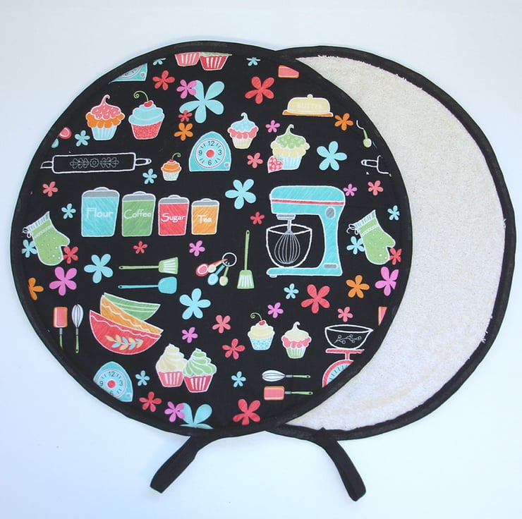 Each mat has three layers - Facing cotton fabric, a layer of padding and a layer of towelling - Making it also suitable for mopping up and pot-grabbing!