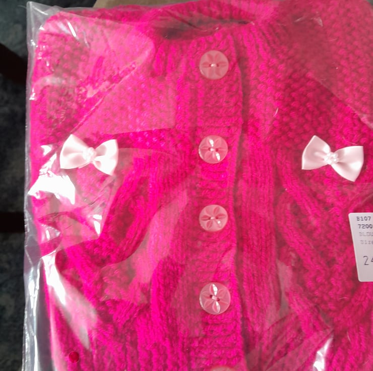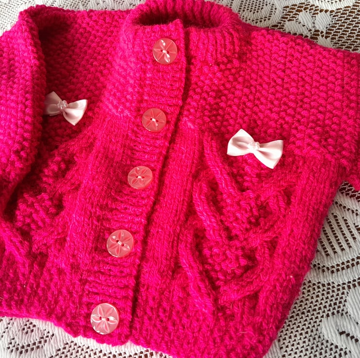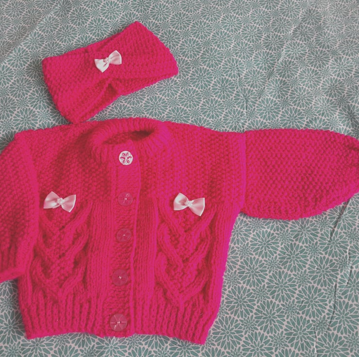 A lovely little cardigan and headband made in Stylecraft DK, Bright Pink 100% Acrylic