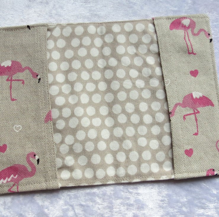 The fabric used is a medium weight cotton fabric, with a flamingo design.