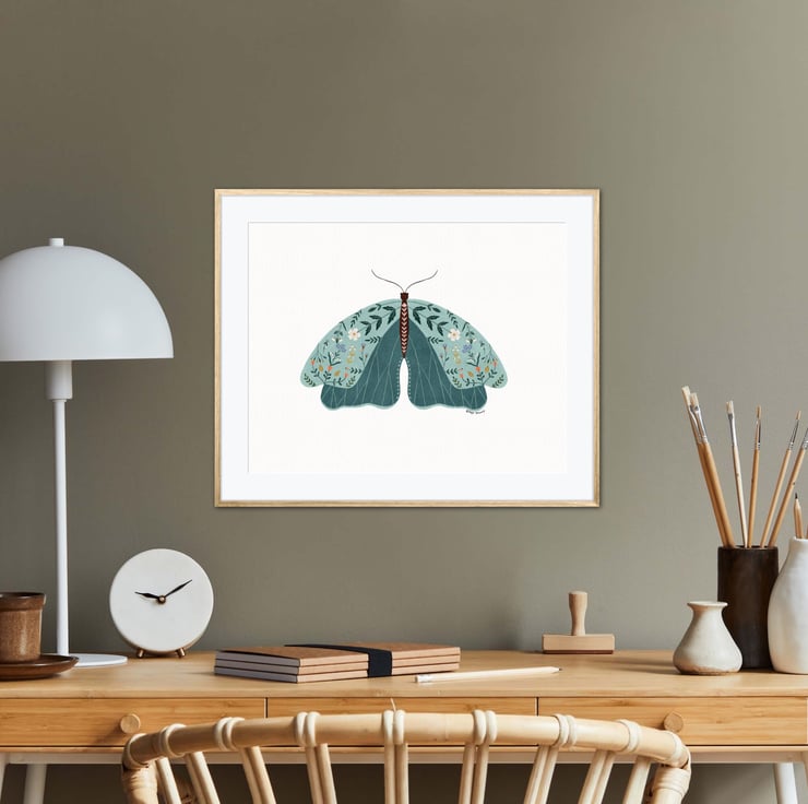 Introducing our captivating Floral Moth Art Print, a stunning fusion of nature and artistry that will bring a touch of enchantment to your space. This exquisite A4 print features a meticulously crafted illustration of a delicate moth adorned with vibrant and intricately designed florals.