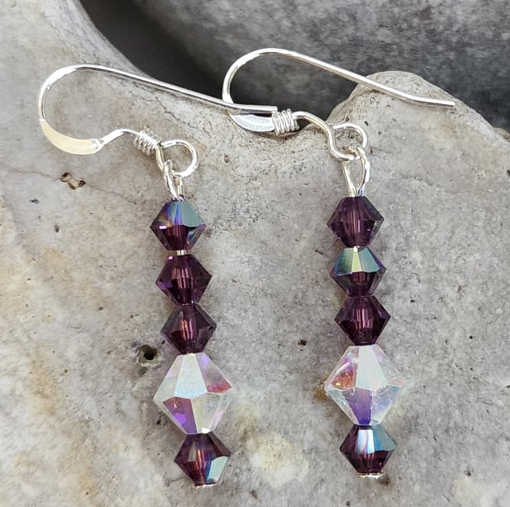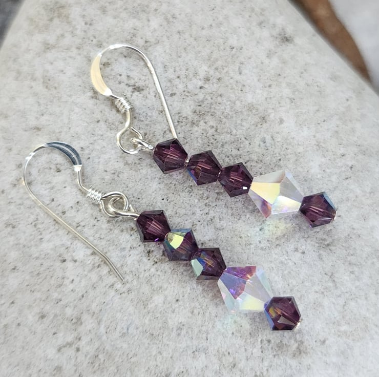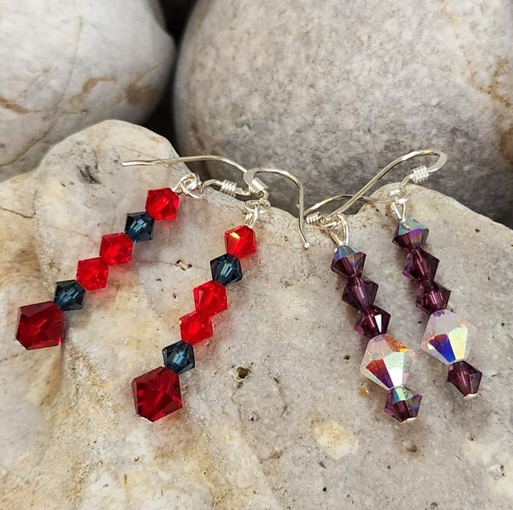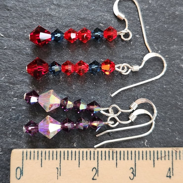 Two pairs of crystal bead earrings. 4mm & 6mm bicone crystals. Sterling silver ear hooks and wires.