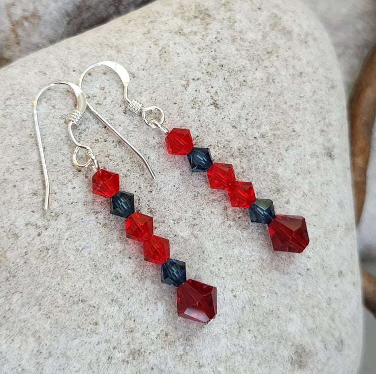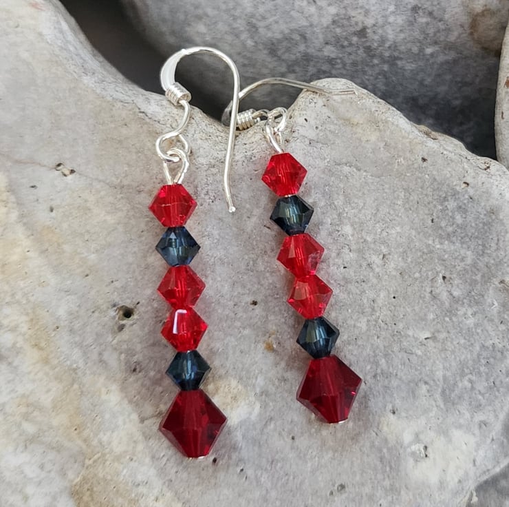 1 - red with 2 dark grey/blue beads each. Just over 2cms drop