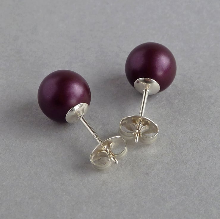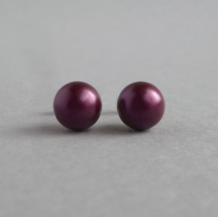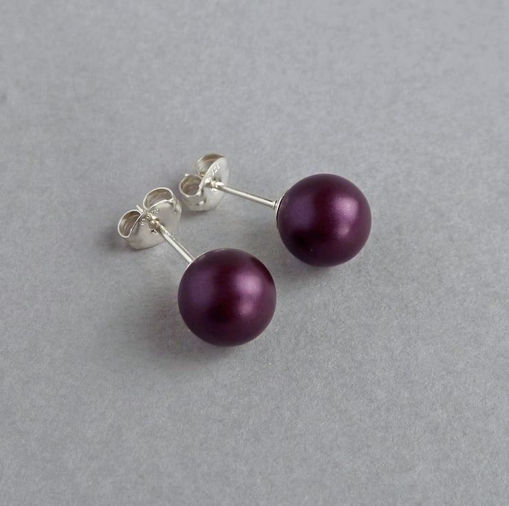 Created using 8mm Elderberry glass pearls, these plum pearl studs are perfect for everyday wear. Each pair of dark purple stud earrings comes individually gift wrapped, making these round, glass pearl studs the perfect gift for bridesmaids or that special somebody.