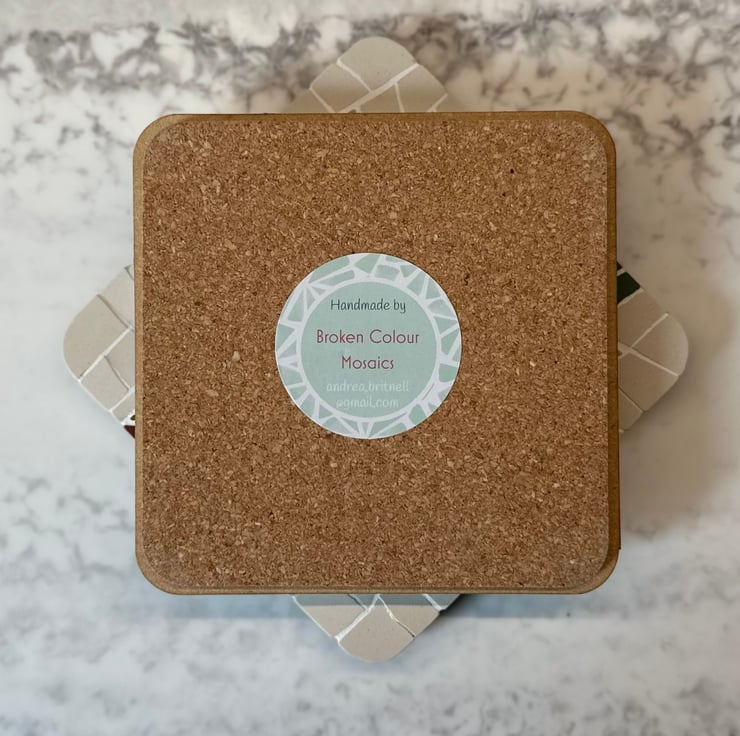 By nature, mosaic is a rough, tactile surface but I have smoothed the coaster edges for comfort. That said, care should be taken when handling the coasters and your table top art is best kept out of reach of small children. The items are sealed and can be surface cleaned with a soapy cloth - you can even use a bit of diluted bleach for any stubborn tea stains. But due to the wooden base, the coaster must not be submerged in water as the base will swell and may dislodge the tiles.