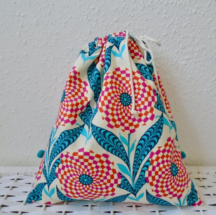 Another lovely Drawstring bag , ideal for storing small craft projects / gift bag / bits & bobs