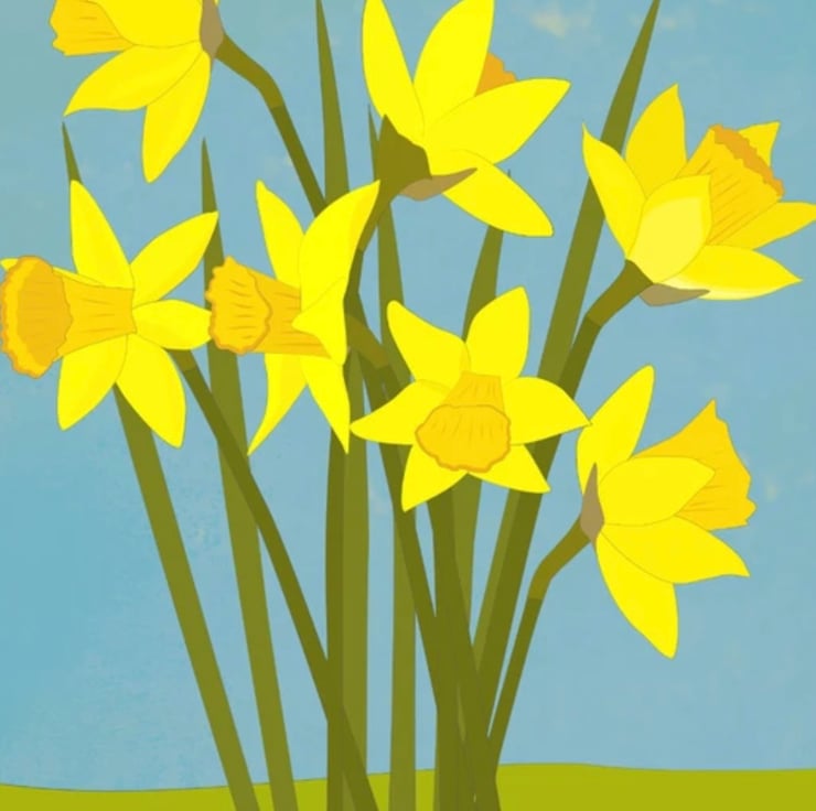 Daffodils - high quality open edition print, with mount, from my series of digital flower illustrations.