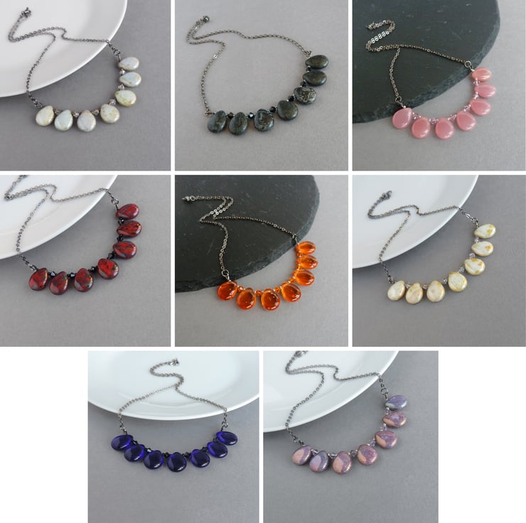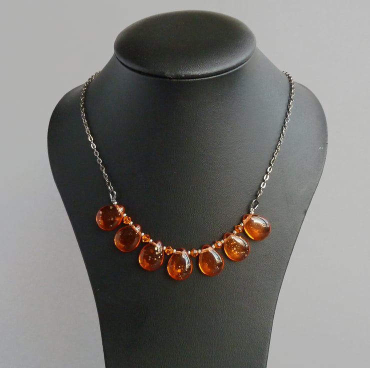 Each tangerine coloured teardrop necklace measures 17 inches / 43cm in length and is finished with gunmetal-plated chain and a lobster clasp. I will add a 2 inch extender chain, to allow you to adjust your necklace to fit.