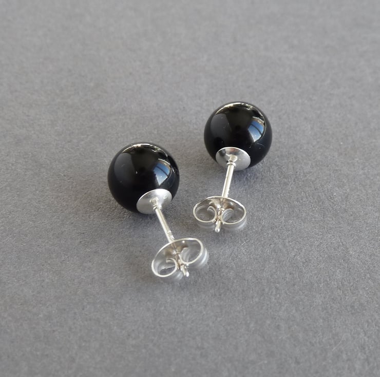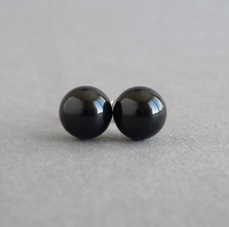 8mm Jet Black Stud Earrings - Simple, Round, Everyday Black Studs - Gifts