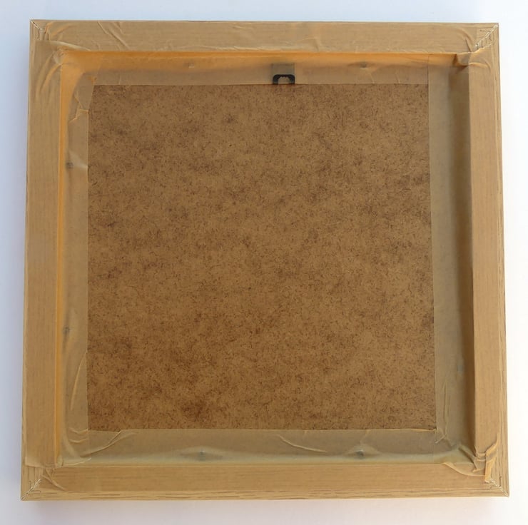 The painting has my signature on the front, is 8 x 8 inches, and is sold in a 13 x 13-inch wood effect frame