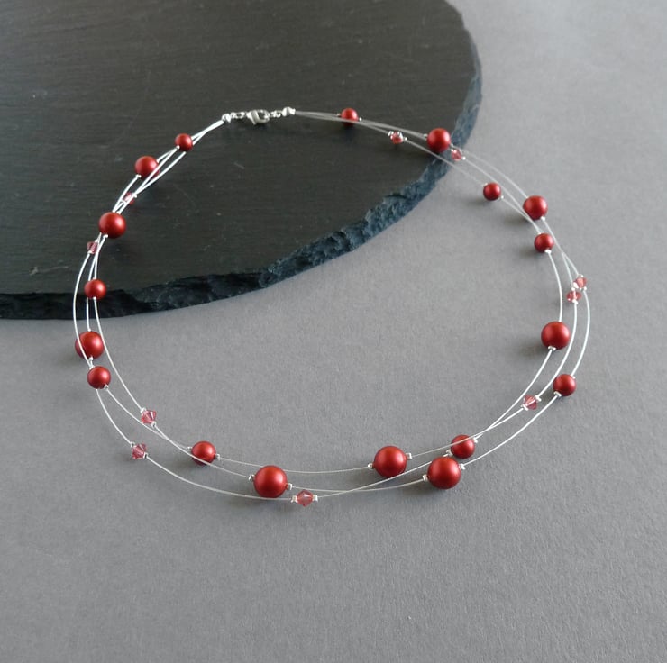 Bright red floating pearl necklace: https://folksy.com/items/8279897