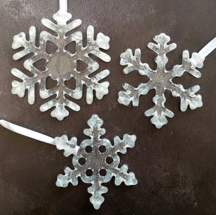 Add a touch of icy sparkle and wintry charm to your home with this Handmade Fused Glass Snowflake Decoration. Each piece is crafted in a kiln, using only the highest quality, fully tested, and compatible art glass.
