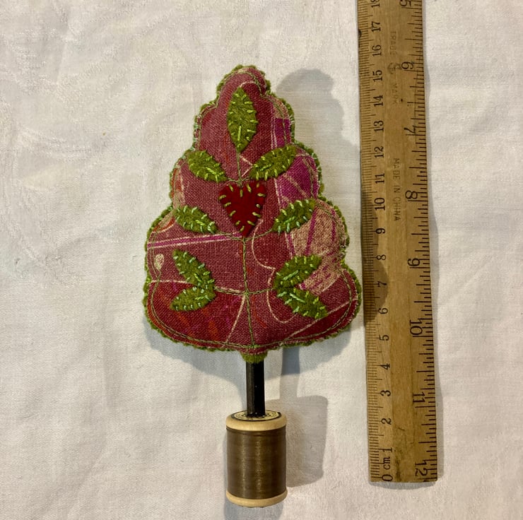 Beautiful printed linen in pinks and reds, with added felt leaves and a little heart.