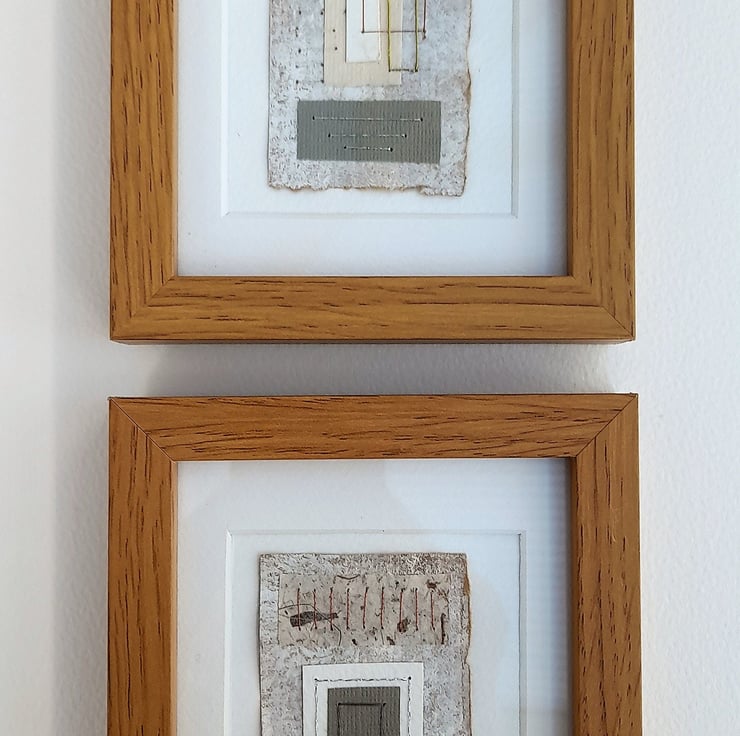 The design of my Handstitched Geometric Squares and Rectangles, I actually made years ago, originally for greeting cards but this past year when I’ve been getting ideas together for my shop, I decided they should be framed instead as they make really pretty little pictures! I’ve always been drawn to geometric paintings and art, but I also love textiles and I was just inspired one day to put the two ideas together & came up with these designs - My Handstitched Geometrics Squares & Rectangles Collection - Shiny Naturals, Pretty Patterns & Colourful Combinations. There is an array of different colours to choose from to match any interior colour scheme. A lovely little treat for yourself or as a present! I wanted to keep the art pieces small so that they could easily fit into anyone’s home, they can be hung on the wall or can sit on a shelf.