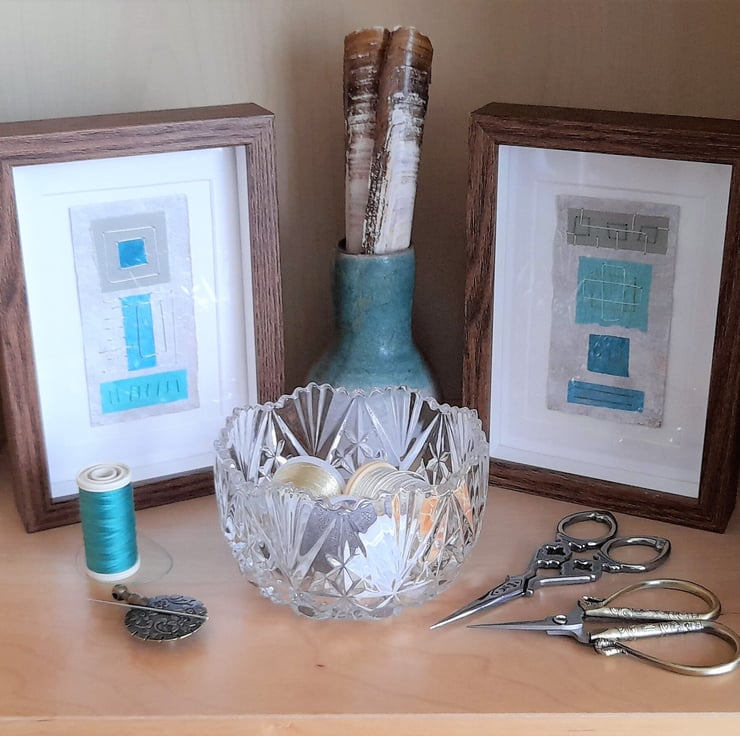 The design of my Handstitched Geometric Squares and Rectangles, I actually made years ago, originally for greeting cards but this past year when I’ve been getting ideas together for my shop, I decided they should be framed instead as they make really pretty little pictures! I’ve always been drawn to geometric paintings and art, but I also love textiles and I was just inspired one day to put the two ideas together & came up with these designs - My Handstitched Geometrics Squares & Rectangles Collection - Shiny Naturals, Pretty Patterns & Colourful Combinations. There is an array of different colours to choose from to match any interior colour scheme. A lovely little treat for yourself or as a present! I wanted to keep the art pieces small so that they could easily fit into anyone’s home, they can be hung on the wall or can sit on a shelf.