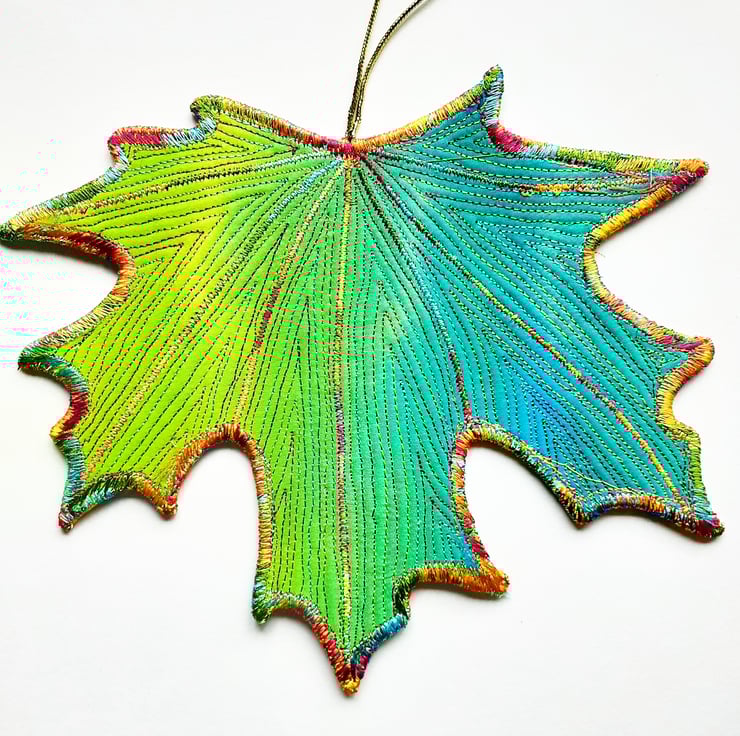 Made from layers of fabric including hand dyed Egyptian cotton and silk fabrics using the free machine embroidery style of sewing