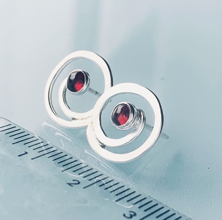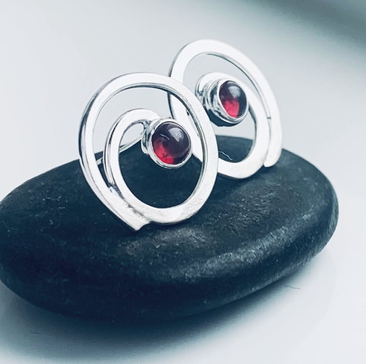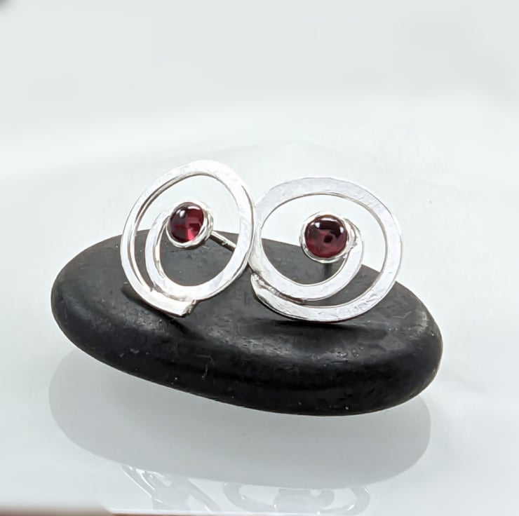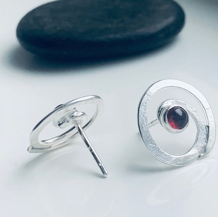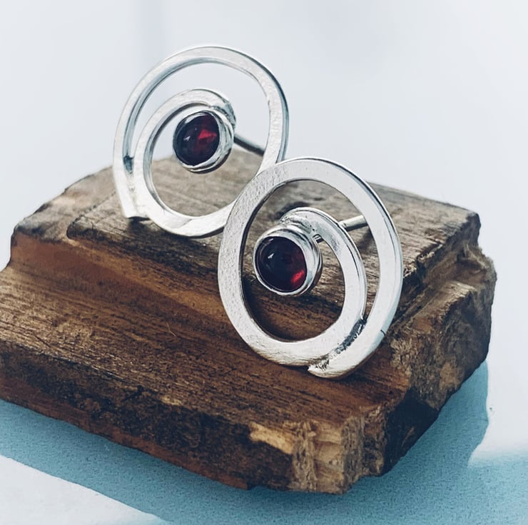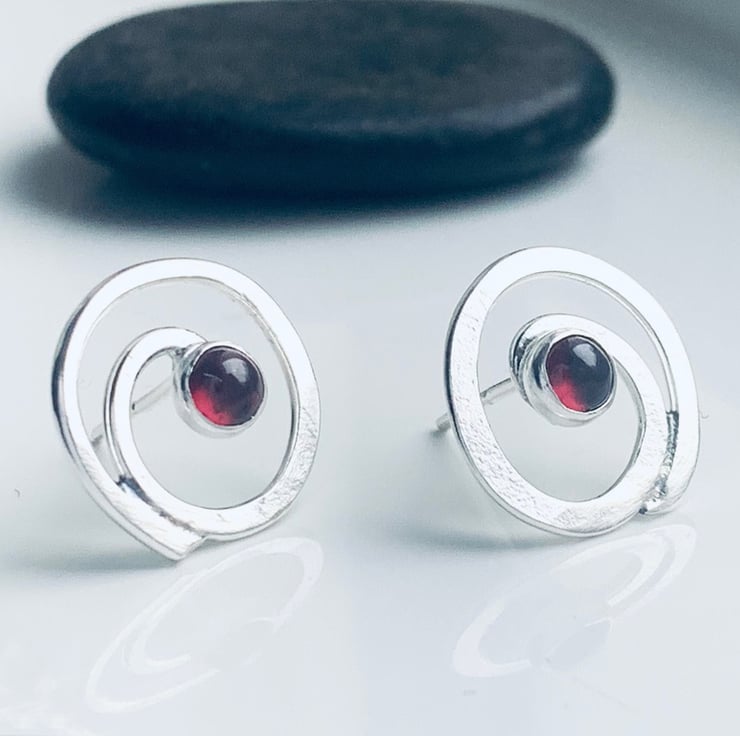 Recycled Sterling Silver Swirl Garnet Earrings