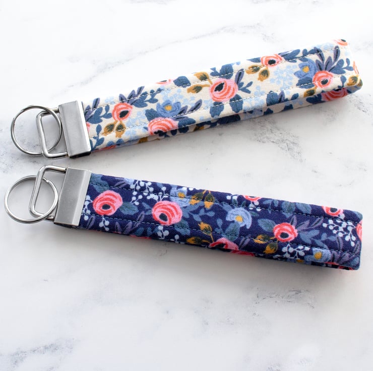 These key fobs / wristlets are handmade using beautiful Rifle Paper Co. Fabric.