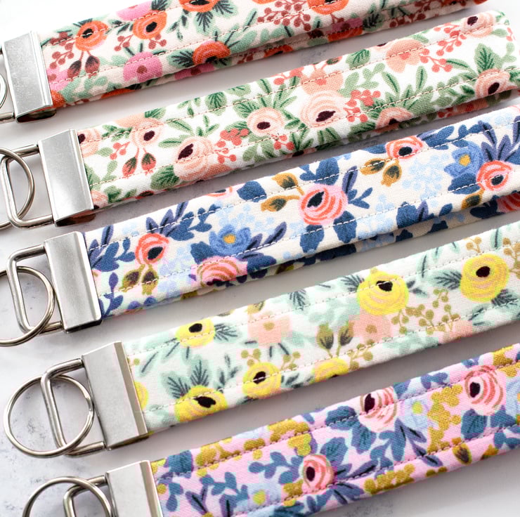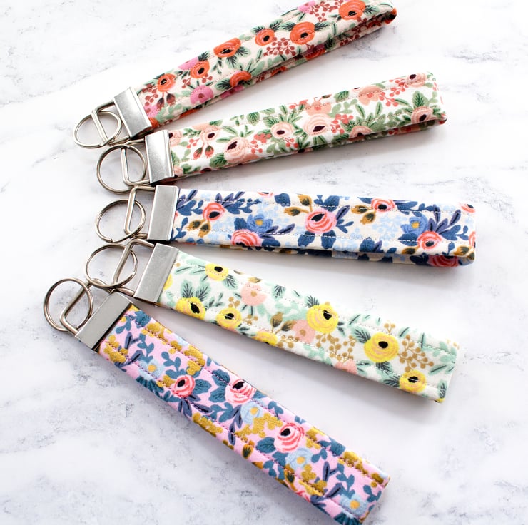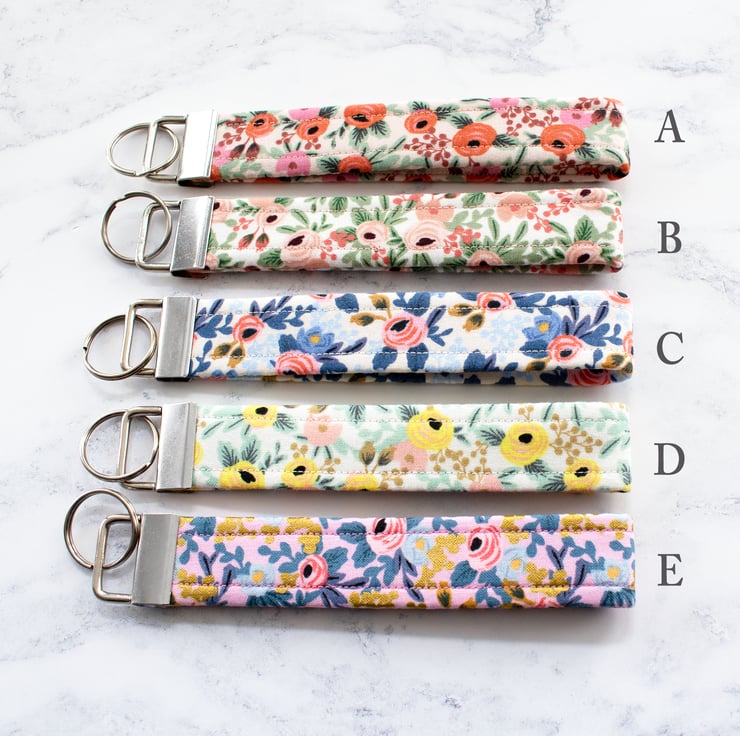 These key fobs / wristlets are handmade using beautiful Rifle Paper Co. Fabric.