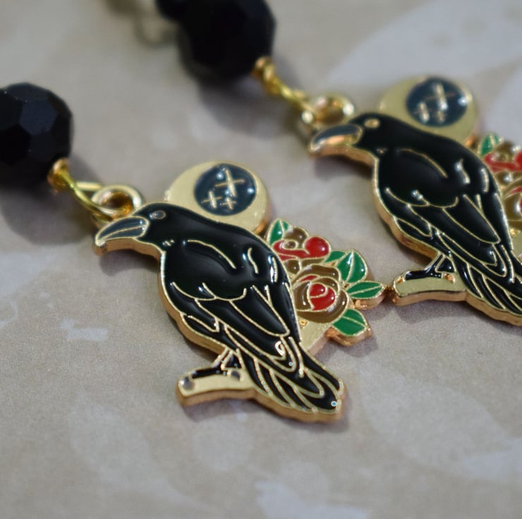 Add a little gothic finishing touch to your outfit with these great raven and crescent moon earrings!