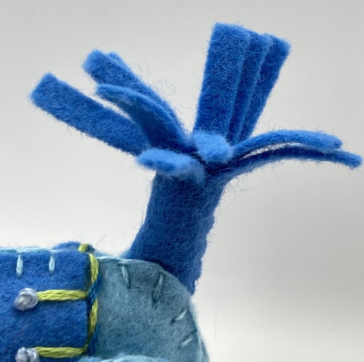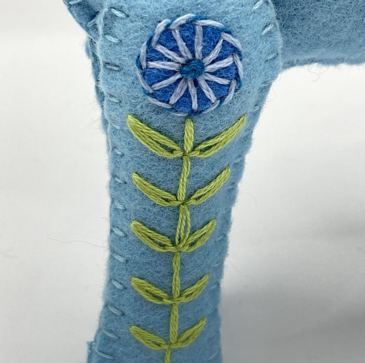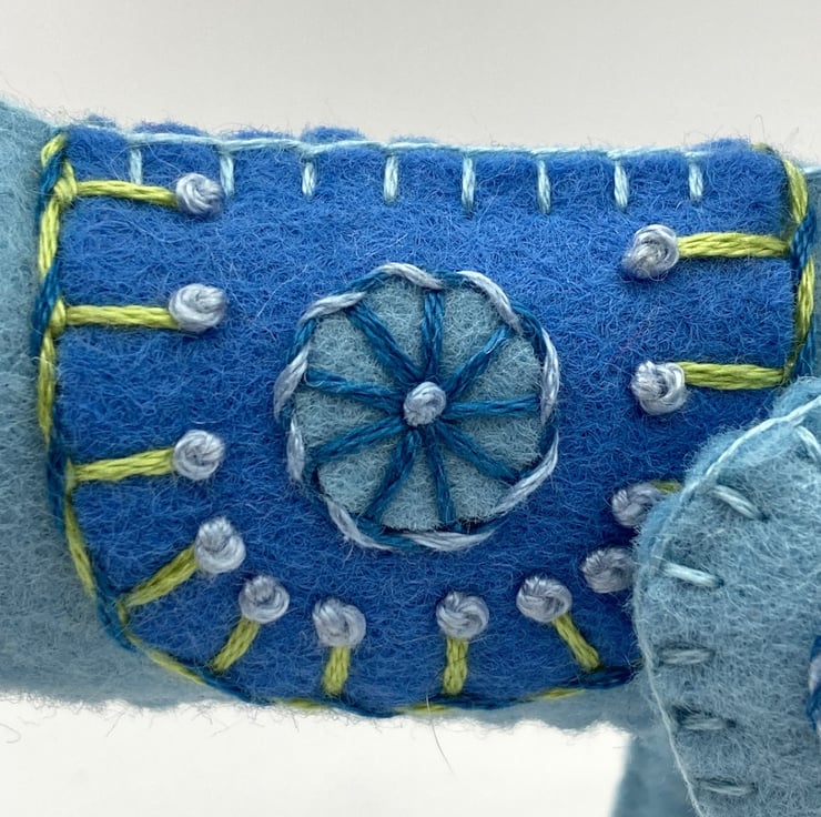 He is totally hand stitched by myself using various embroidery stitches, making him completely unique.